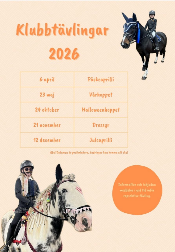 Under 2026 kommer vi att köra tillfällen med Öppet Stall – ett koncept där vi öppnar vår klubb med ridning och häst-samvaro för allmänheten. Detta är möjligt att genomföra tack vare att vi har fått 20 000 kr från medborgarbudgeten från Munkedals kommun – tack vare att vårt bidrag till omröstningen fick många röster. Datum för detta kommer med två tillfällen på våren till att börja med.
