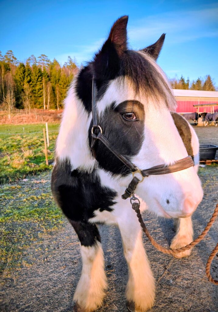 Elvis är en Tinker, skäckfärgad valack som vi kommer att låna till verksamheten under vårterminen. Om han trivs hos oss och passar för ridskoleverksamhet kan det bli så att han stannar hos oss. Elvis är en lugn, cool kille som gillar att bli borstad och pysslad med.